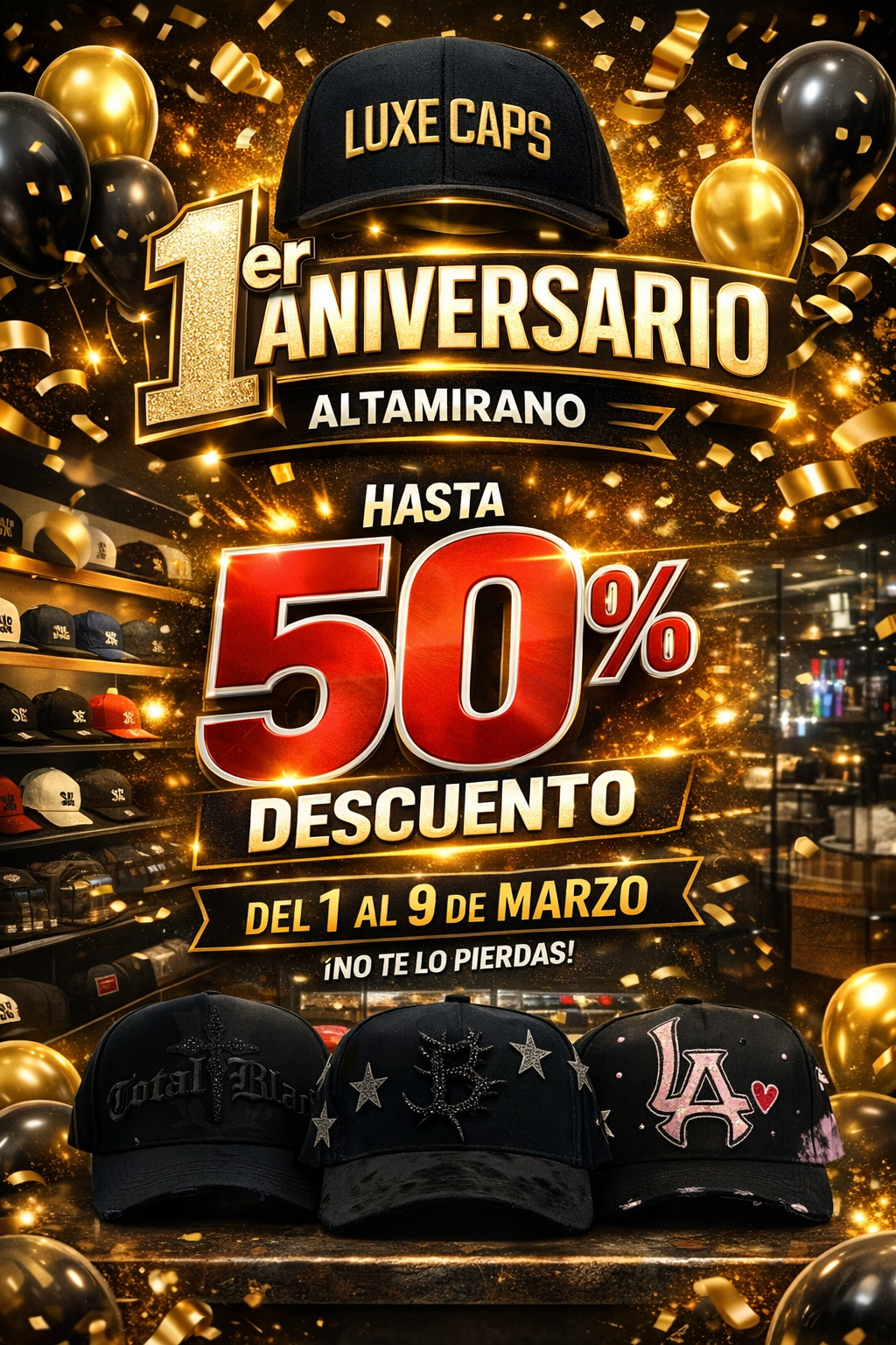 🎉🔥 1er Aniversario Altamirano – Hasta 50% OFF 💥🧢